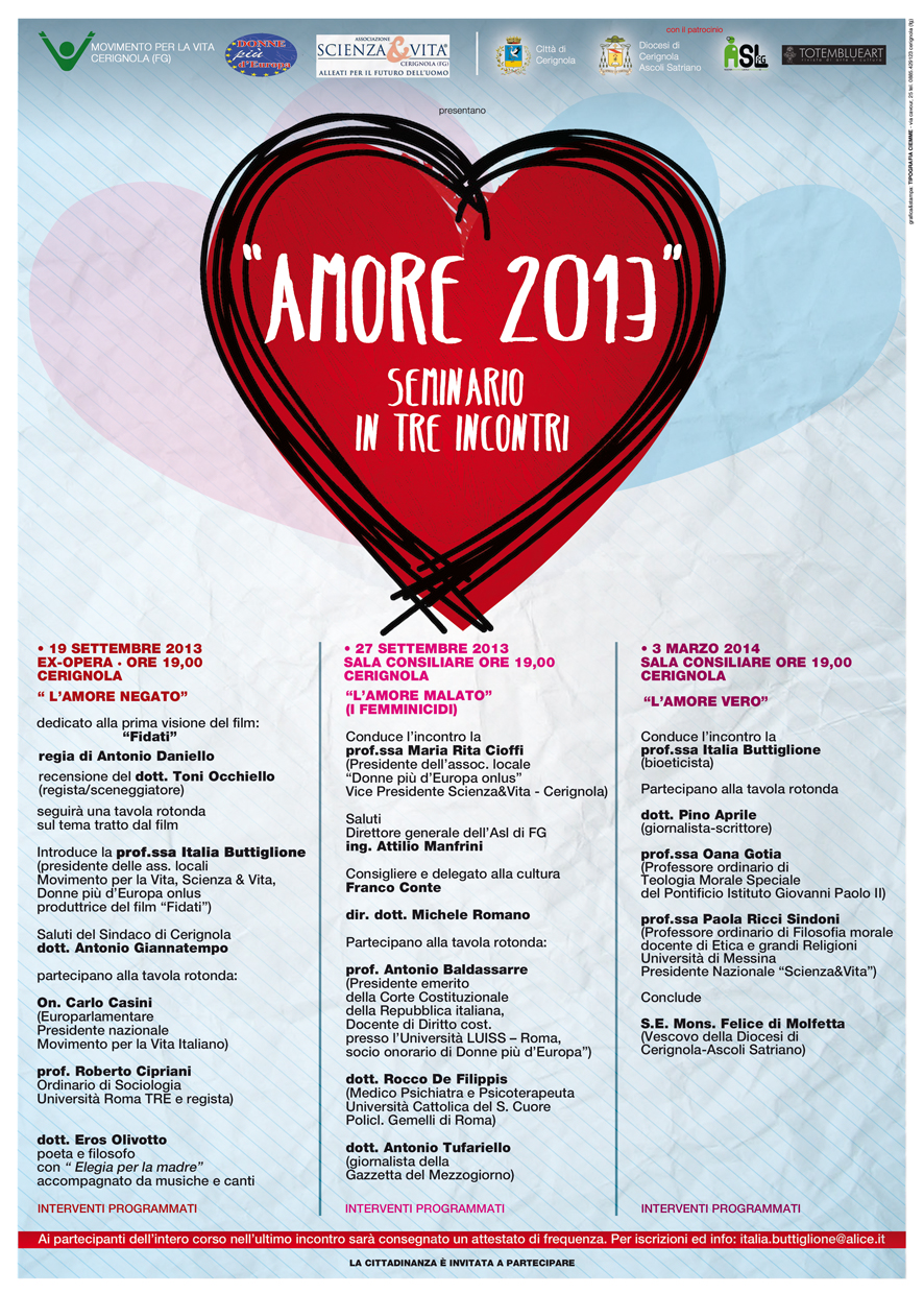 “AMORE 2013” SEMINARIO IN TRE INCONTRI: “L’amore malato” (I femminicidi).