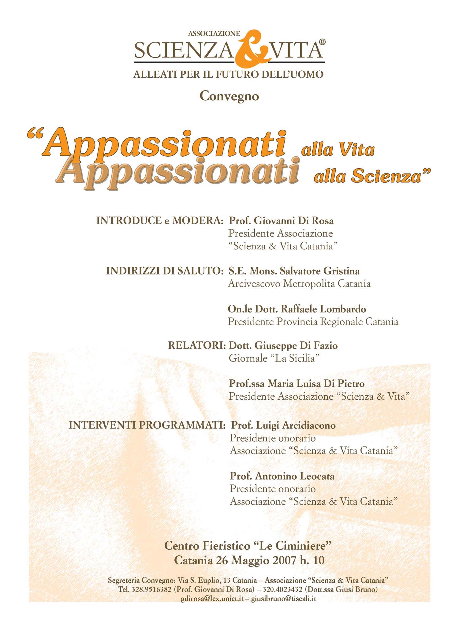 Per informazioni: Segreteria Convegno – Via S. Euplio, 13 – Catania