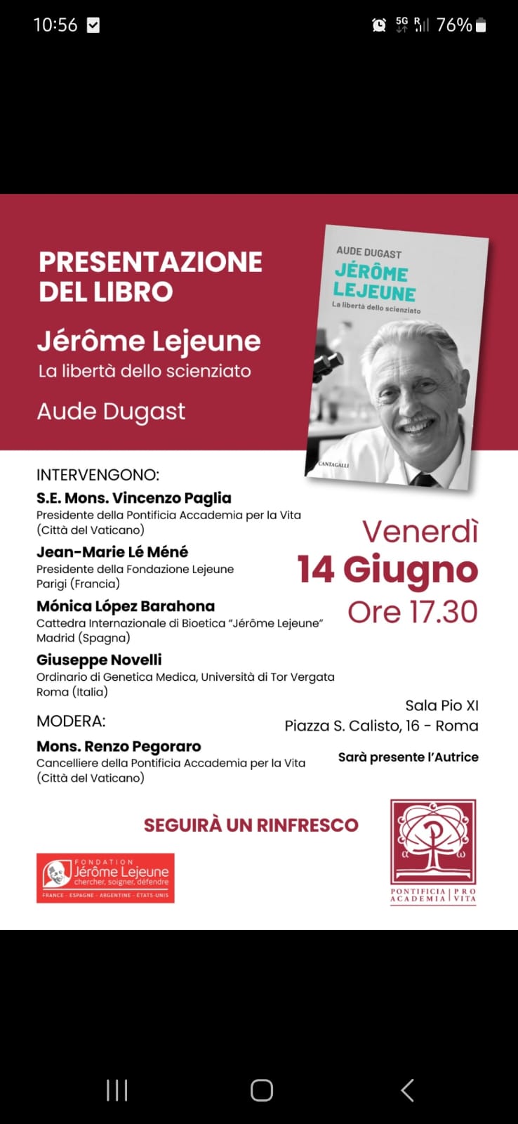 BIBLIONEWS | JEROME LEJEUNE LA LIBERTA’ DELLO SCIENZIATO DI AUDE DUGAST | ROMA 14 GIUGNO 2024