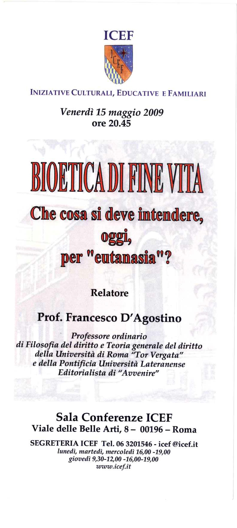 Relatori Francesco D'Agostino, ordinario di diritto e teoria generale del diritto, Università Tor Vergata
