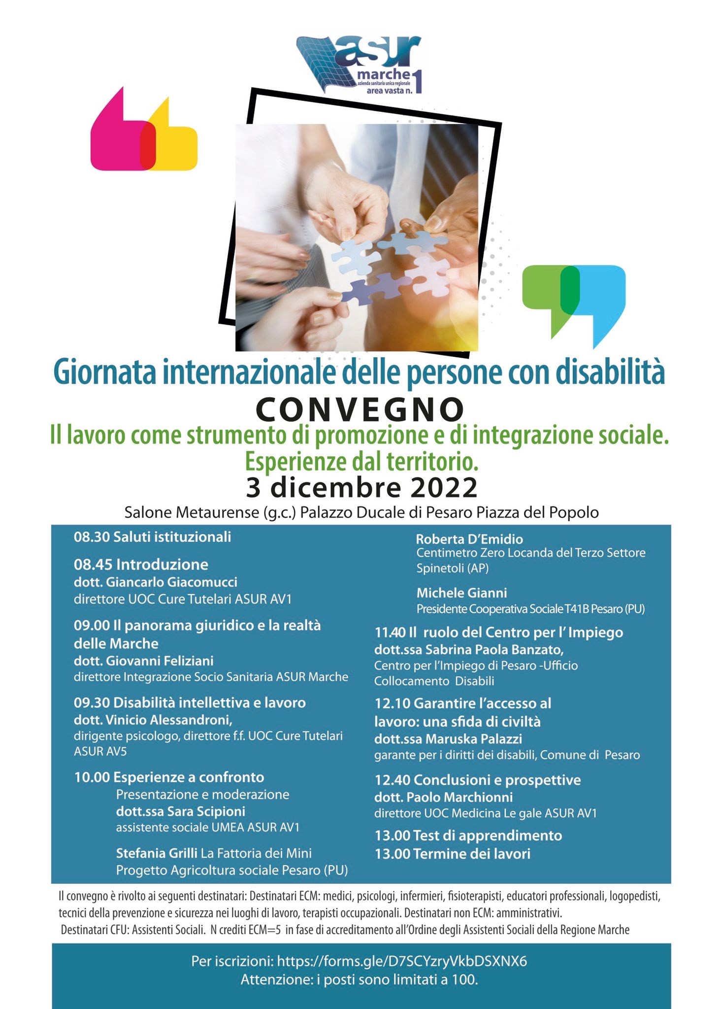 CONVEGNO | GIORNATA INTERNAZIONALE PERSONE CON DISABILITA’. IL LAVORO COME STRUMENTO DI INTEGRAZIONE E PROMOZIONE SOCIALE | PESARO 3 DICEMBRE 2022