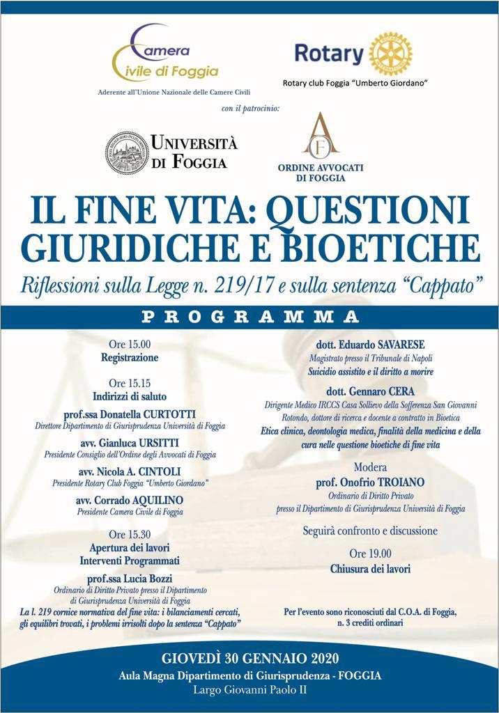 Giovedì 30 Gennaio 2020, ore 15.00. Aula Magna Dipartimento Giurisprudenza, Largo Giovanni Paolo II, Foggia.