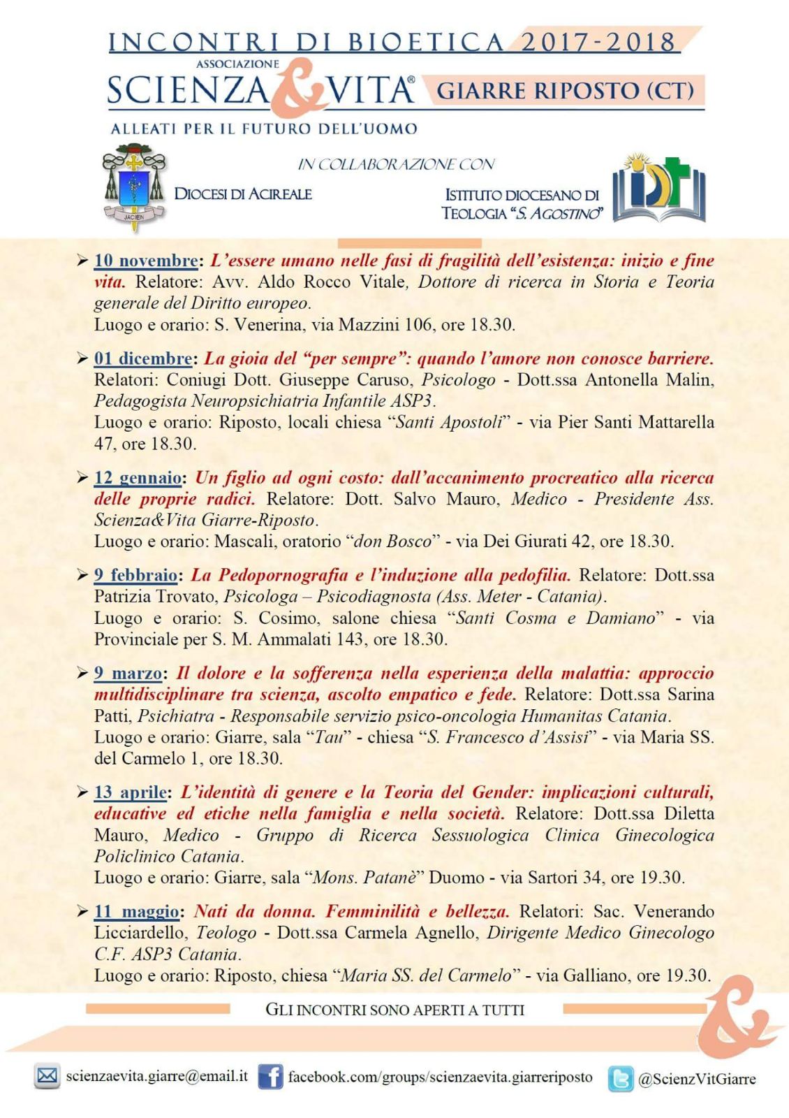Convegno organizzato da Scienza & Vita Giarre Riposto (Catania) in la collaborazione con la Diocesi di Acireale e con l’Istituto Diocesano di Teologia “S.Agostino”.