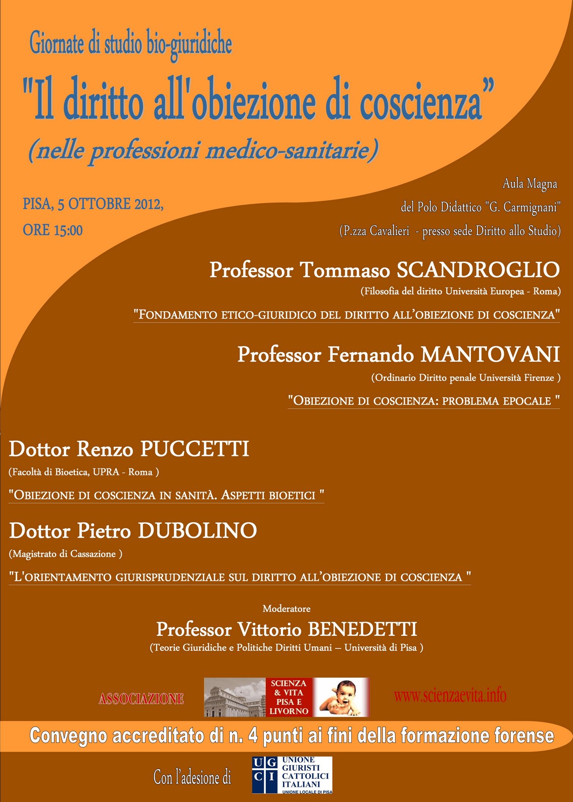 Relatori Prof. Tommaso Scandroglio, Prof. Fernando Mantovani, Dott. Renzo Puccetti e Dott. Pietro Dubolino. Moderatore: Prof. Vittorio Benedetti.