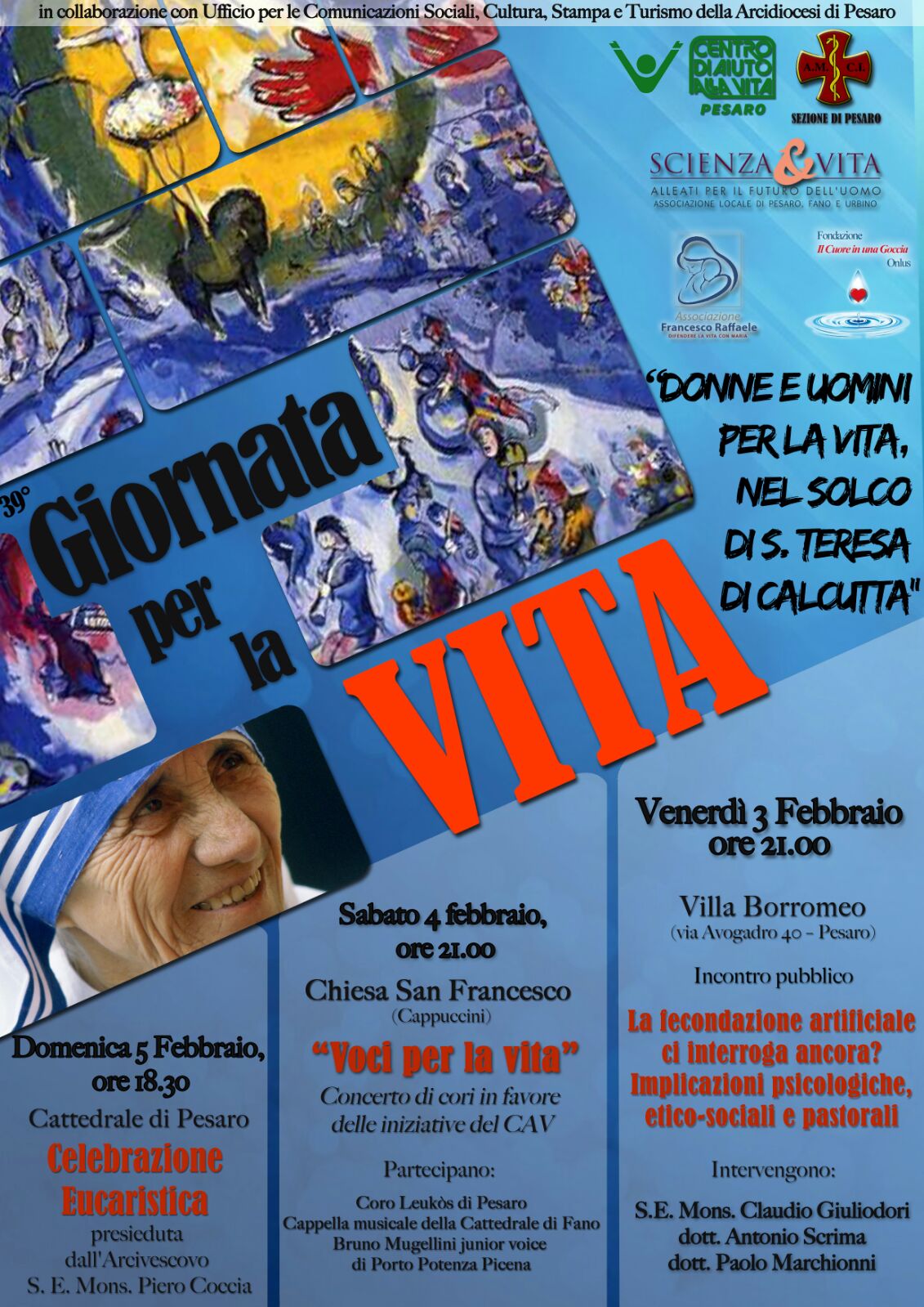 ne della 39° Giornata per la vita, l’Associazione Scienza & Vita di Pesaro, Fano e Urbino insieme ad altre realtà significative sul territorio, ha organizzato tre diversi appuntamenti dal titolo “Donne e uomini per la vita, nel solco di S. Teresa di Calcutta”.