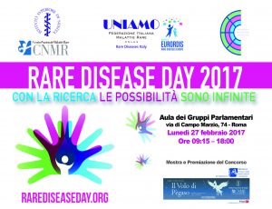 In occasione della X GIORNATA MONDIALE DELLE MALATTIE RARE si svolgerà a Roma una giornata di lavori organizzata dall’Intergruppo Parlamentare Malattie Rare in collaborazione con il Centro Nazionale Malattie Rare dell’Istituto Superiore di Sanità e con UNIAMO – Federazione Italiana Malattie Rare Onlus. L’evento si terrà presso l’Aula dei Gruppi Parlamentari (via di Campo Marzio, 74, Roma) il 27 febbraio 2017 dalle ore 9:15 alle ore 18:00. Programma
