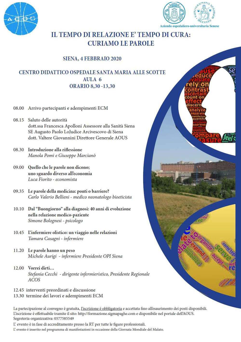SIENA | IL TEMPO DELLA RELAZIONE E’ TEMPO DI CURA: CURIAMO LE PAROLE | 4 Febbraio 2020