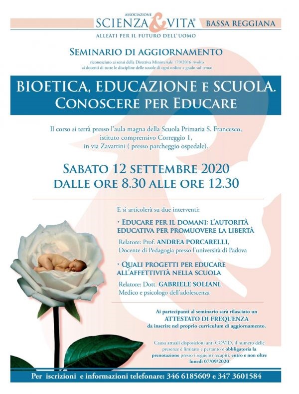 S&V BASSA REGGIANA | SEMINARIO: BIOETICA EDUCAZIONE E SCUOLA. CONOSCERE PER EDUCARE | 12 Settembre 2020